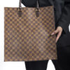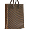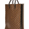 Borsa firmata Louis Vuitton, modello Sac Plat nella misura GM, realizzata in tela nella classica fantasia damier ebene con inserti in pelle e hardware dorato. Non è dotata di nessuna chiusura, internamente rivestita in tessuto scamosciato rosso con due comode tasche, la borsa è abbastanza capiente. Munita di doppio manico in pelle, per una comoda portata a mano. L’articolo si presenta in ottime condizioni.
