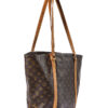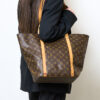 Borsa firmata Louis Vuitton, modello Sac Shopping nella misura MM, realizzata in tela marrone nella classica fantasia Monogram con inserti in vacchetta e hardware dorato. Non è dotata di nessuna chiusura, internamente rivestita in tela marrone con comode tasche, la borsa è molto capiente. Munita di doppio manico in vacchetta, per una comoda portata a spalla o a mano. L’articolo si presenta in buone condizioni, con segni di usura sulla vacchetta, visibili in foto.
