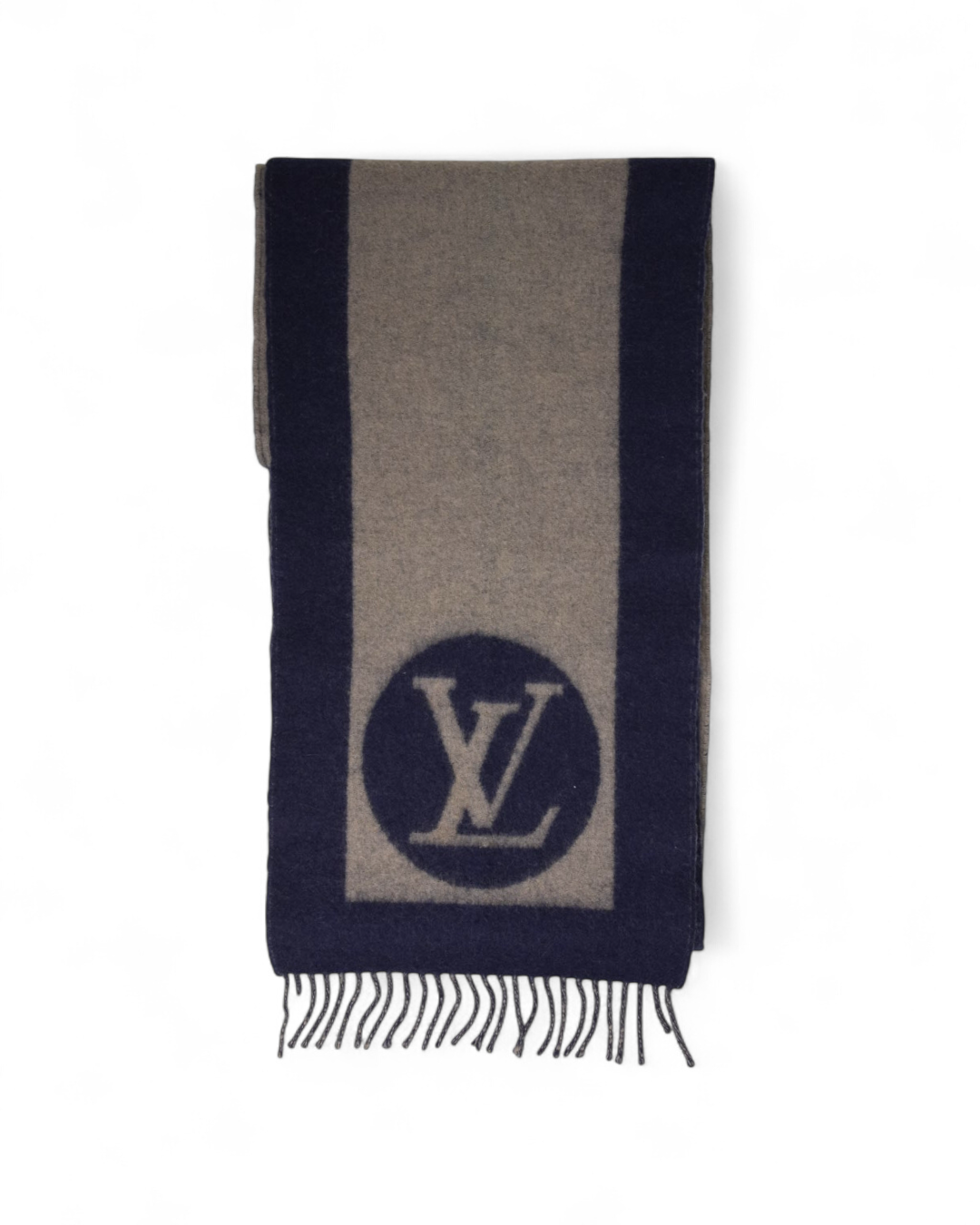 Sciarpa firmata Louis Vuitton, realizzata in lana nella colorazione blu e grigia arricchita da frange. Misura 172 centimetri di lunghezza e 27 centimetri di altezza. L’articolo si presenta in ottime condizioni.