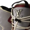 Sneakers firmate Louis Vuitton, modello LV Trainer Snow, realizzate in una combinazione di materiali pregiati nei toni del bianco, azzurro e bordeaux, in una versione tricolor dal carattere sportivo ma raffinato. Ispirate al mondo del basket, queste sneakers si distinguono per la struttura robusta e imbottita, pensata per offrire comfort anche nelle giornate più fredde. Presentano un allacciatura frontale e dettagli in suede e tessuto tecnico. Numero 44 IT. L’articolo si presenta in buone condizioni.