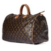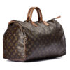 Borsa firmata Louis Vuitton, modello Speedy nella misura 40, realizzato in tela marrone nella classica fantasia monogram con inserti in vacchetta e hardware dorato. Dotato di una chiusura a zip, internamente rivestito in tela marrone con comoda tasca, la borsa è molto capiente. Munito di doppio manico in vacchetta, per una comoda portata a mano. Completo di lucchetto e chiavi. L’articolo si presenta in buone condizioni.