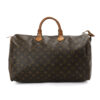 Borsa firmata Louis Vuitton, modello Speedy nella misura 40, realizzato in tela marrone nella classica fantasia Monogram con inserti in vacchetta e hardware dorato. Dotato di una chiusura superiore a zip, internamente rivestito in tela marrone con comoda tasca, la borsa è abbastanza capiente. Munito di doppio manico in vacchetta, per una comoda portata a mano. Competo di lucchetto. L'articolo si presenta in buone condizioni.