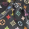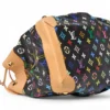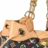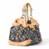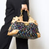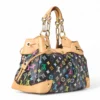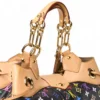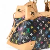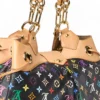 Borsa firmata Louis Vuitton, edizione limitata in collaborazione con Takashi Murakami. Modello Ursula nella misura GM, realizzata in tela nera nella classica fantasia multicolor con rifiniture in vacchetta e hardware dorato. Dotata di una chiusura ad incastro, internamente rivestita in tessuto scamosciato marrone con comodi scompartimenti e tasche, la borsa è abbastanza capiente. Munita di doppio manico in pelle e catena per una comoda portata a mano o a spalla. Presenta le iniziali incise C.D.B sulla parte frontale. L’articolo si presenta in buone condizioni con piccoli segni di usura visibili in foto.