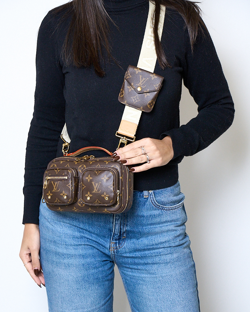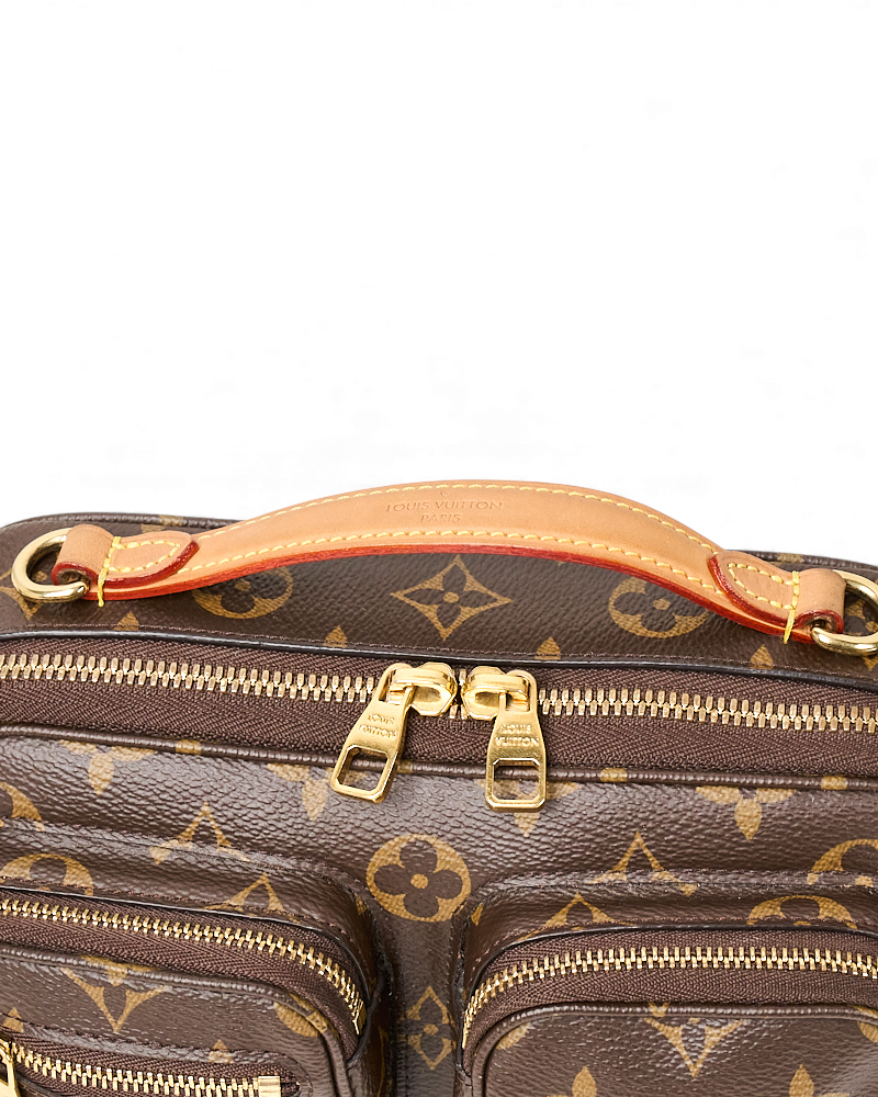 Borsa firmata Louis Vuitton, modello Utility nella misura PM, realizzata in tela marrone nella classica fantasia monogram con inserti in vacchetta e hardware dorato. Dotata di una chiusura semicircolare a zip con doppio cursore, internamente rivestita in tela marrone con comoda tasca, la borsa è abbastanza capiente. Munita di un manico in vacchetta e di una tracolla rimovibile e regolabile in tessuto, per una comoda portata a spalla o a tracolla. Arricchita da due comode tasche sulla parte frontale e di un portamonete rimovibile. L’articolo si presenta in ottime condizioni.