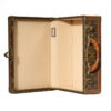 Dotata di una chiusura ad incastro sicura e raffinata, l’interno è rivestito in pelle beige e offre uno spazio capiente, ideale per documenti o uso business. Il manico rigido in vacchetta consente una portata a mano. L’articolo è in buone condizioni generali, con normali segni di utilizzo compatibili con l’età.