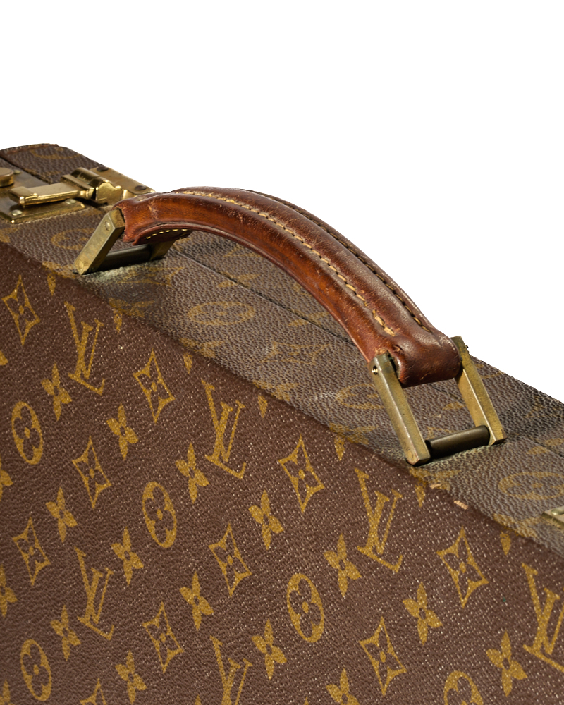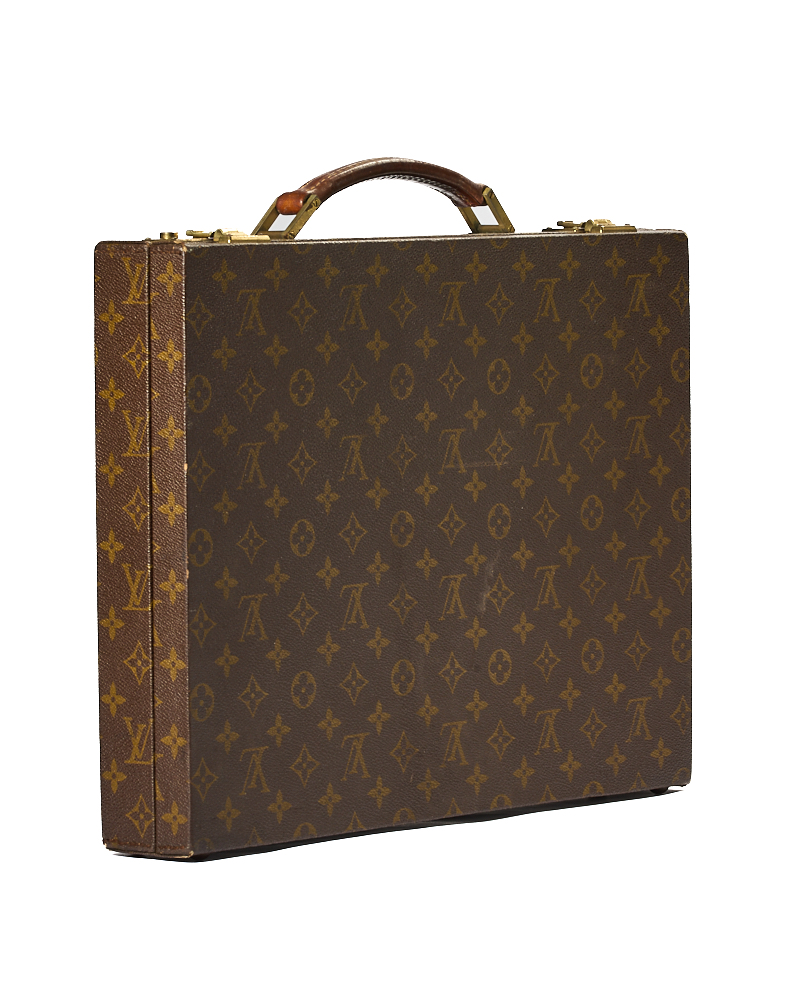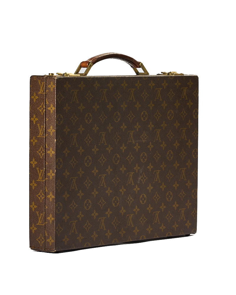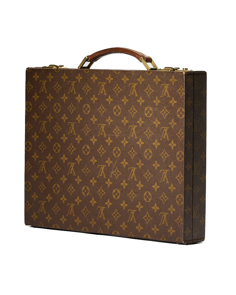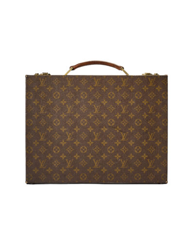 Borsa firmata Louis Vuitton, modello Valigetta President nella misura 40, realizzata in tela marrone nella classica fantasia monogram con inserti in pelle marrone e hardware dorato. Dotata di doppia chiusura ad incastro, internamente rivestita in pelle liscia tono su tono, la valigetta è abbastanza capiente. Munita di un manico in pelle, per una comoda portata a mano. L’articolo si presenta in buone condizioni, con segni di usura visibili in foto.