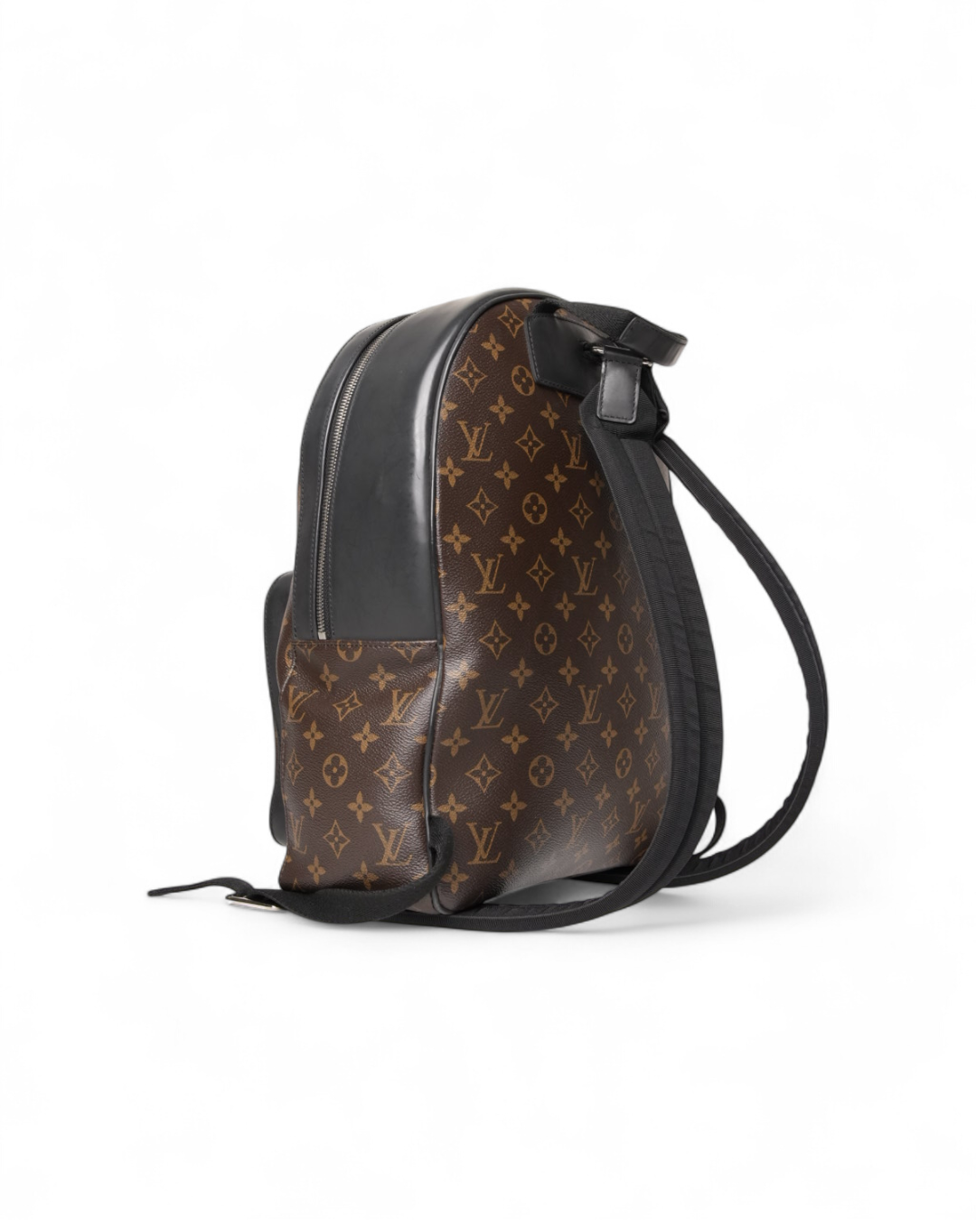 Zaino firmato Louis Vuitton, modello Josh nella misura GM, realizzato in tela marrone nella classica fantasia monogram con inserti in pelle nera e hardware argento. Dotato di una chiusura semicircolare a zip, internamente rivestito in tela bordeaux con comode tasche, lo zaino è abbastanza capiente. Munito di due spallacci regolabili in tessuto, per una comoda portata a spalla. Completo di una comoda tasca sulla parte frontale con chiusura a zip. L’articolo si presenta in ottime condizioni.