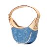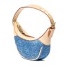 Borsa firmata Mastro Geppetto Vintage, modello Mezzaluna, Made in Italy, un capolavoro di artigianalità che unisce il denim blu jeans con il logo del brand in rilievo tono su tono e finiture in pelle naturale, preservando la sua morbidezza autentica. Gli hardware dorati aggiungono un tocco di sofisticato. La borsa è realizzata per contenere l’essenziale. Dotata di una chiusura semicircolare a zip, garantendo praticità e sicurezza. Munita di un manico regolabile in pelle che consente una portata versatile, a mano o a spalla, per un comfort ottimale. Il logo del brand in metallo, posizionato lateralmente, arricchisce il design senza sovrastare l’estetica sobria ed elegante. Ogni borsa è realizzata a mano con cura e attenzione ai dettagli, per offrire un prodotto esclusivo che unisce qualità, stile e unicità.