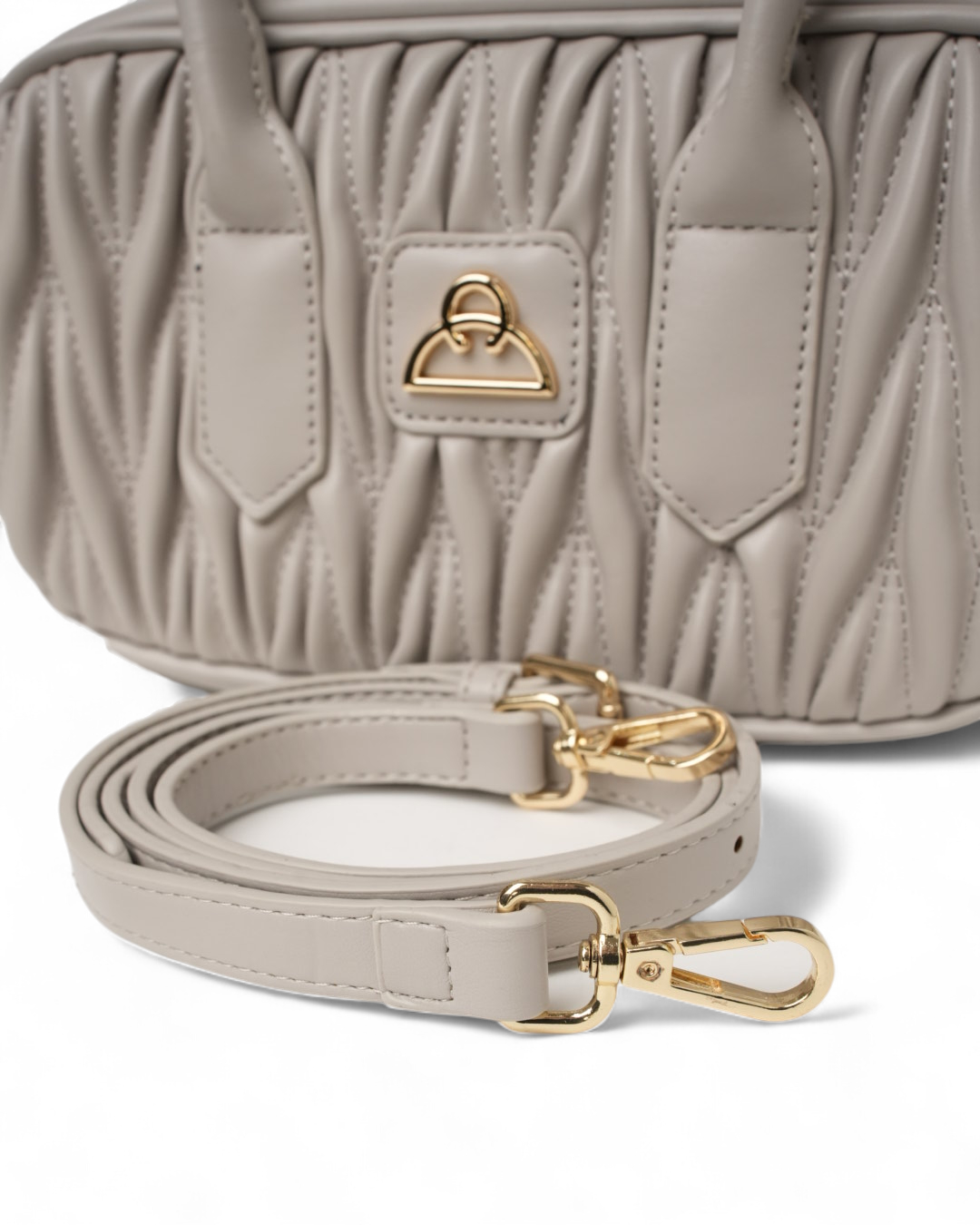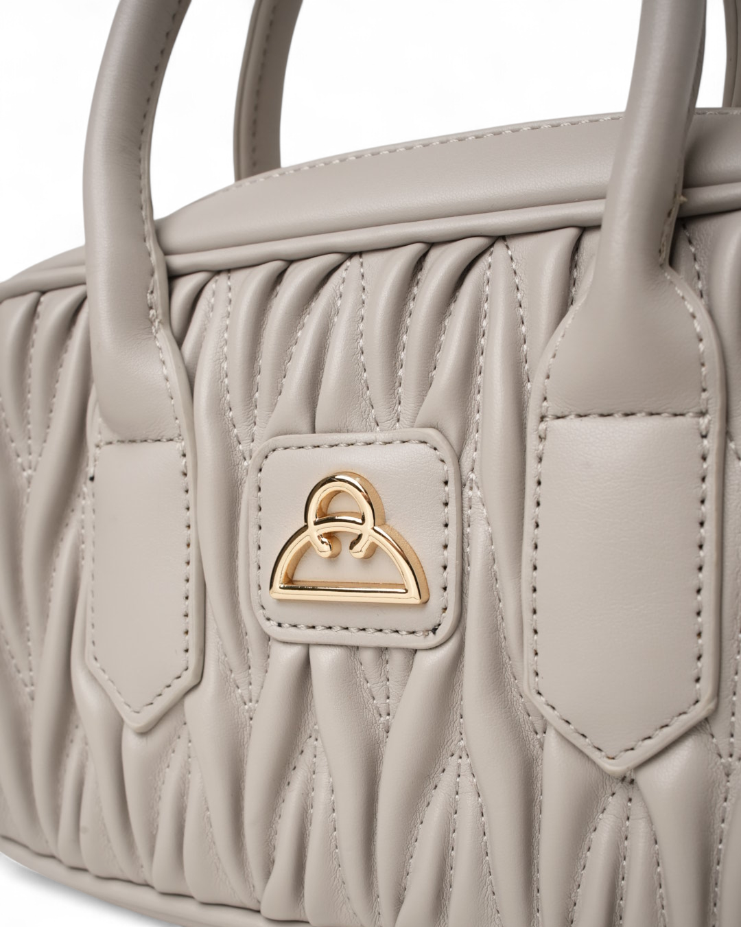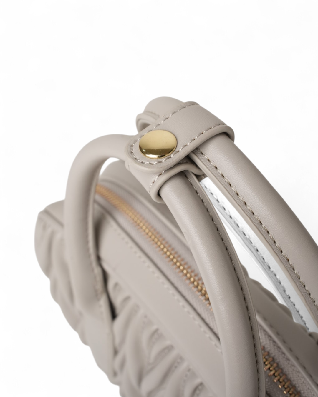 Scopri l’eleganza raffinata della borsa Mastro Bag, modello Bassotto small, un accessorio che unisce design ricercato, funzionalità e qualità artigianale. Realizzata in pelle nella colorazione Taupe dal finish morbido e luminoso, si distingue per l’intramontabile motivo matelassé, che aggiunge un tocco di sofisticata femminilità. La struttura compatta, ma sorprendentemente capiente, è valorizzata da una chiusura a zip semicircolare. All’interno, la fodera in tessuto grigio ospita pratiche tasche che aiutano a organizzare al meglio gli effetti personali, rendendo questa borsa perfetta per l’uso quotidiano o per accompagnare i tuoi look più curati. Pensata per garantire massima versatilità, è dotata di doppio manico in pelle per una portata a mano elegante e di una tracolla regolabile e rimovibile, ideale per un utilizzo a spalla o crossbody, adattandosi con stile a ogni momento della giornata. Arricchita dal classico logo del brand sulla parte frontale.