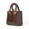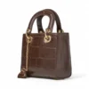 Scopri l’eleganza raffinata della borsa Mastro Bag, modello Tote nella misura mini, un accessorio che unisce design ricercato, funzionalità e qualità artigianale. Realizzata in pelle nella colorazione Coffee dal finish liscio e luminoso, si distingue per l’intramontabile motivo cocco, che aggiunge un tocco di sofisticata femminilità. La struttura compatta, ma sorprendentemente capiente per l’essenziale , è valorizzata da una chiusura a zip. All’interno, la fodera in tessuto grigio ospita pratiche tasche che aiutano a organizzare al meglio gli effetti personali, rendendo questa borsa perfetta per l’uso quotidiano o per accompagnare i tuoi look più curati. Pensata per garantire massima versatilità, è dotata di doppio manico in pelle per una portata a mano elegante e di una tracolla regolabile e rimovibile, ideale per un utilizzo a spalla o crossbody, adattandosi con stile a ogni momento della giornata. Arricchita dal un ciondolo rimovibile col classico logo del brand in metallo oro.