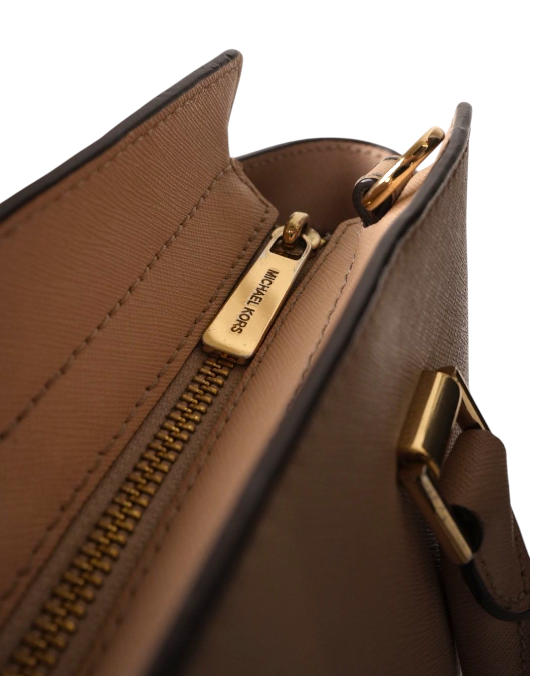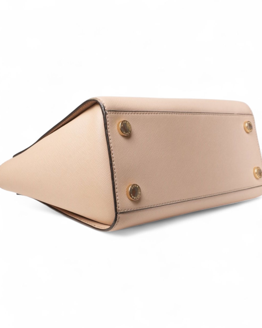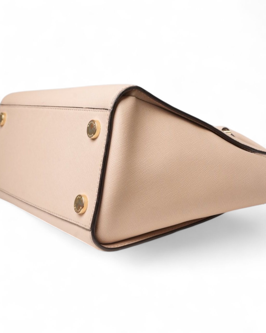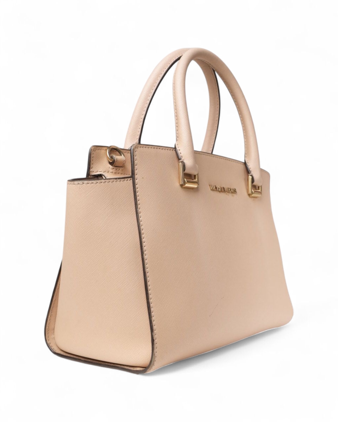 Borsa firmata Michael Kors, modelo Selma nella misura medium, realizzata in pelle saffiano nella colorazione rosa con hardware dorato. Dotata di una chiusura superiore a zip, internamente rivestita in raso logato beige con due comode tasche, la borsa è abbastanza capiente. Munita di doppio manico e di una tracolla rimovibile e regolabile, per una comoda portata a spalla o a tracolla. L’articolo si presenta in buone condizioni.