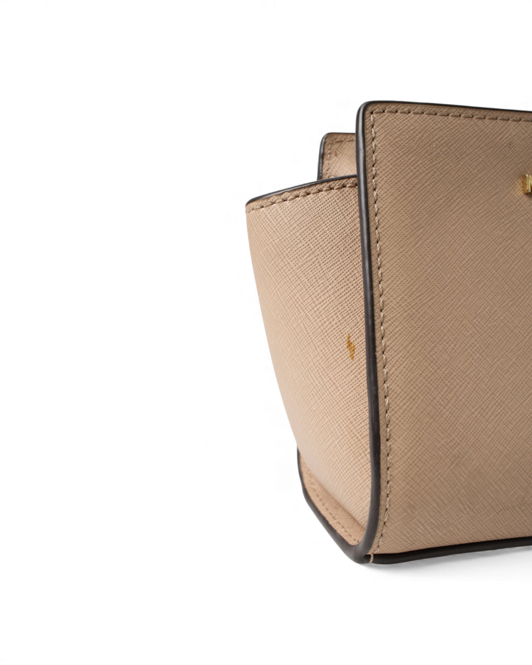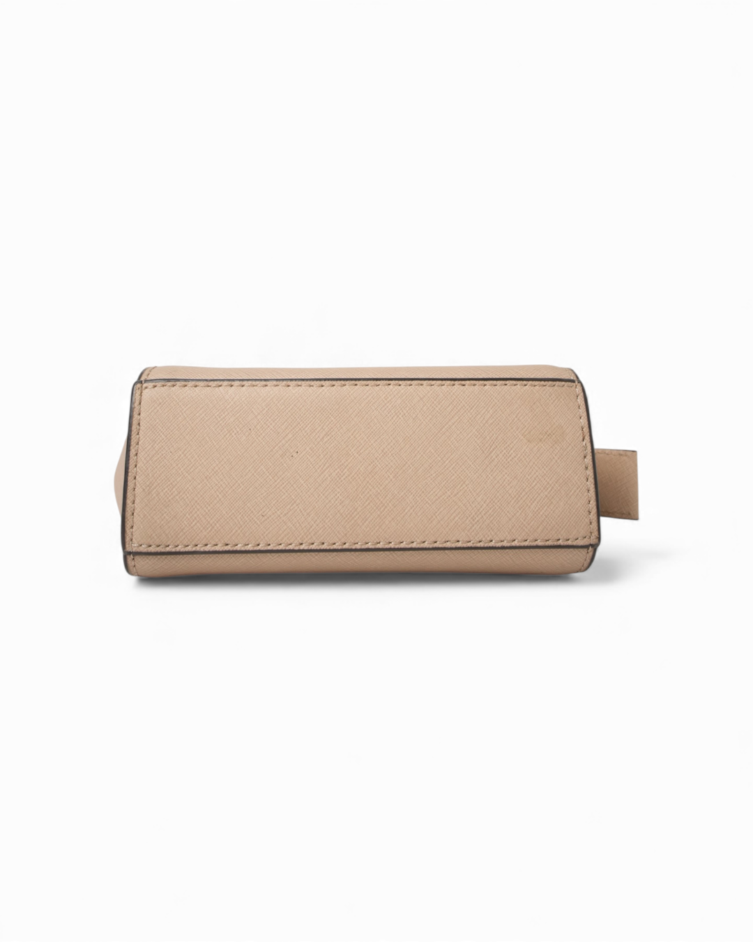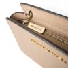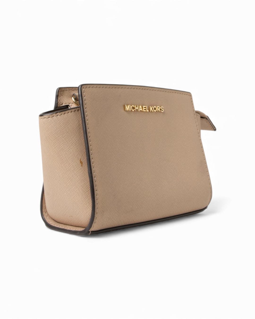 Borsa firmata Michael Kors, modello Selma nella misura mini, realizzata in pelle saffiano nella colorazione cipria con hardware dorato. Dotata di una chiusura superiore a zip, internamente rivestita in tessuto logato beige con comode fessure per documenti, la borsa è capiente per l’essenziale. Munita di una tracolla regolabile e rimovibile, per una comoda portata a spalla o a tracolla. L’articolo si presenta in buone condizioni.