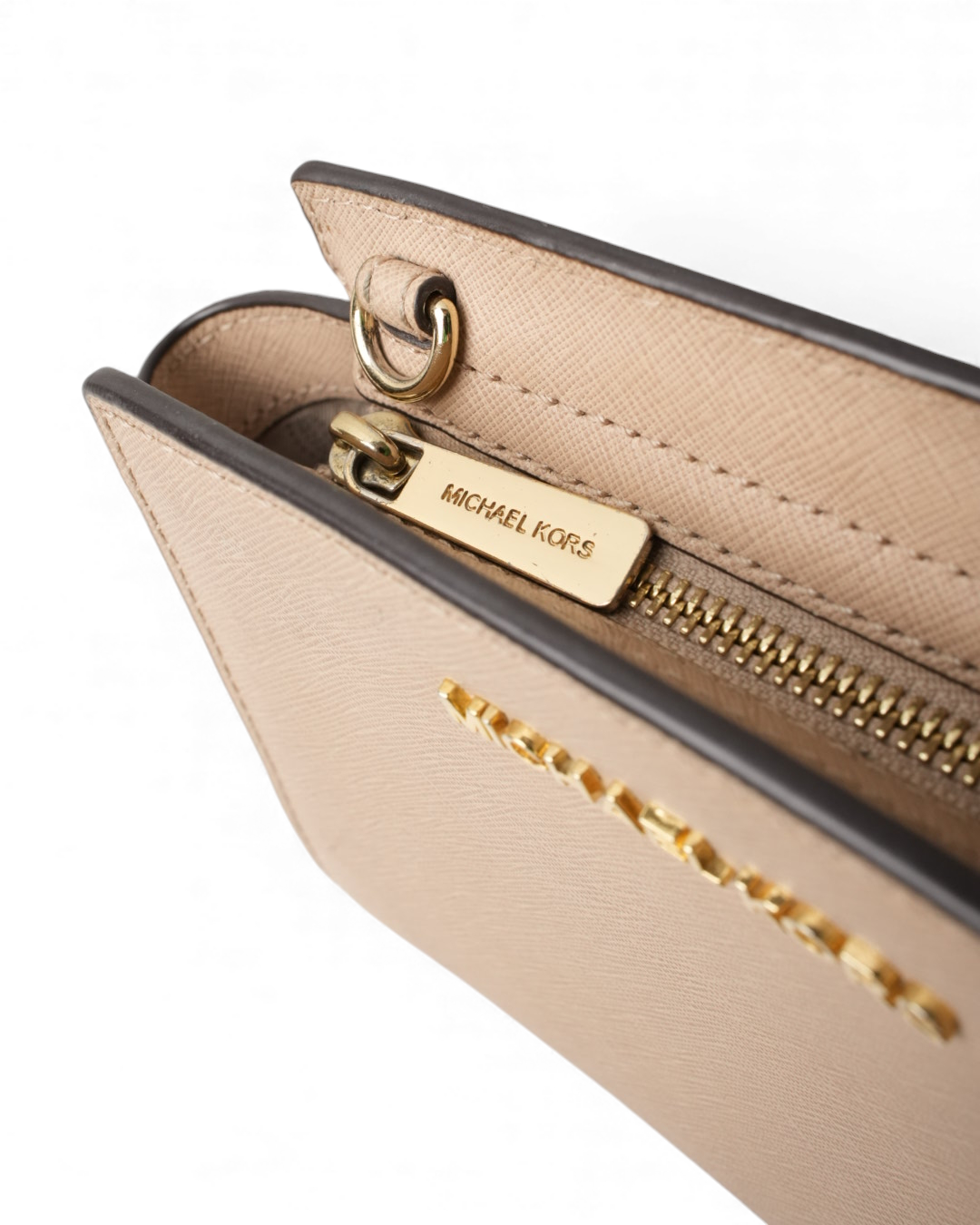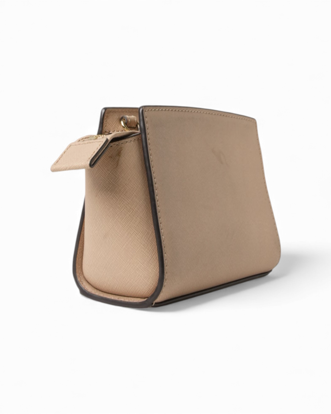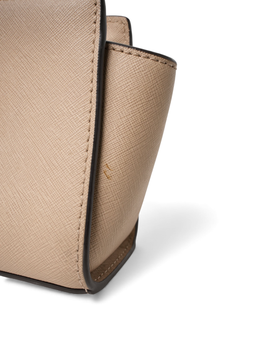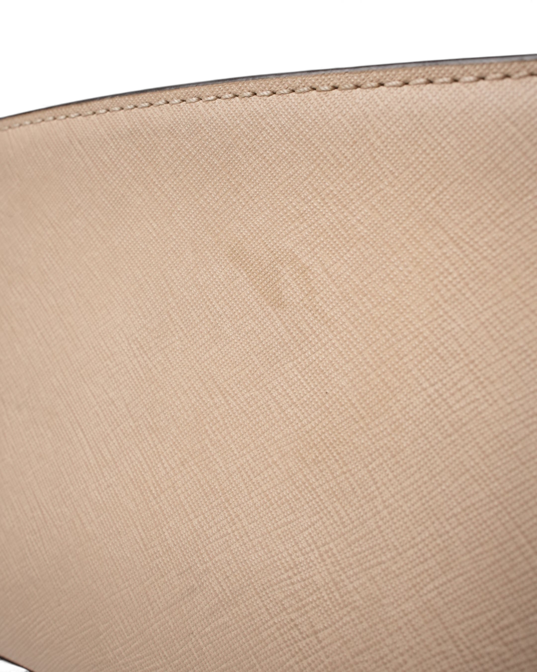 Borsa firmata Michael Kors, modello Selma nella misura mini, realizzata in pelle saffiano nella colorazione cipria con hardware dorato. Dotata di una chiusura superiore a zip, internamente rivestita in tessuto logato beige con comode fessure per documenti, la borsa è capiente per l’essenziale. Munita di una tracolla regolabile e rimovibile, per una comoda portata a spalla o a tracolla. L’articolo si presenta in buone condizioni.