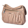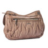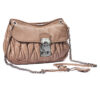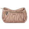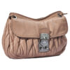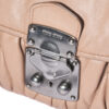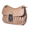 Borsa firmata Miu Miu, modello Coffer nella misura small, realizzata in pelle groffata cipria con hardware argento. Dotata di una chiusura frontale ad incastro, internamente rivestita in tela marrone con comode tasche, la borsa è abbastanza capiente. Munita di una tracolla scorrevole e regolabile, per una comoda portata a spalla o a tracolla. Presenta una comoda tasca con chiusura a zip sul retro. L’articolo si presenta in buone condizioni, con segni di usura visibili in foto.