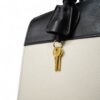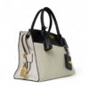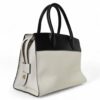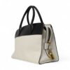 Borsa firmata Prada, modello Esplanade nella misura medium, realizzata in pelle saffiano bianco e nero con hardware dorato. Dotata di una chiusura superiore a zip, internamente rivestita in tessuto logato con comode tasche, la borsa è abbastanza capiente. Munito di doppio manico, per una comoda portata a mano. Completo di Lucchetto, Chiavi e accessorio rimovibile. L’articolo si presenta in buone condizioni.