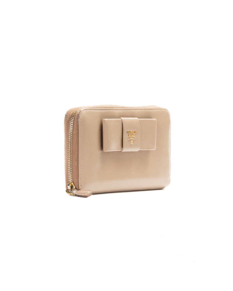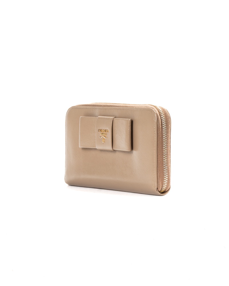 Prada Portafoglio Fiocco Zip Saffiano Nudo