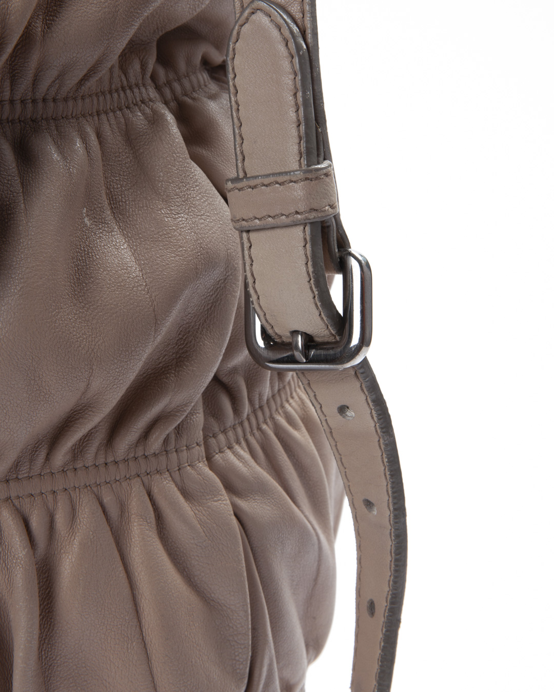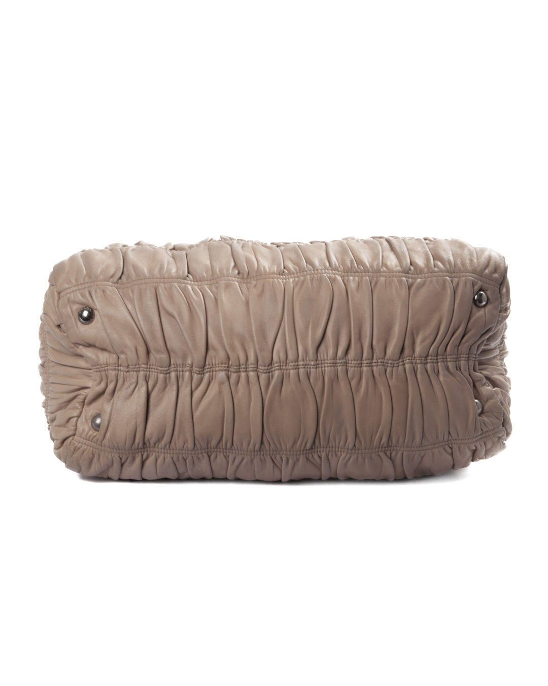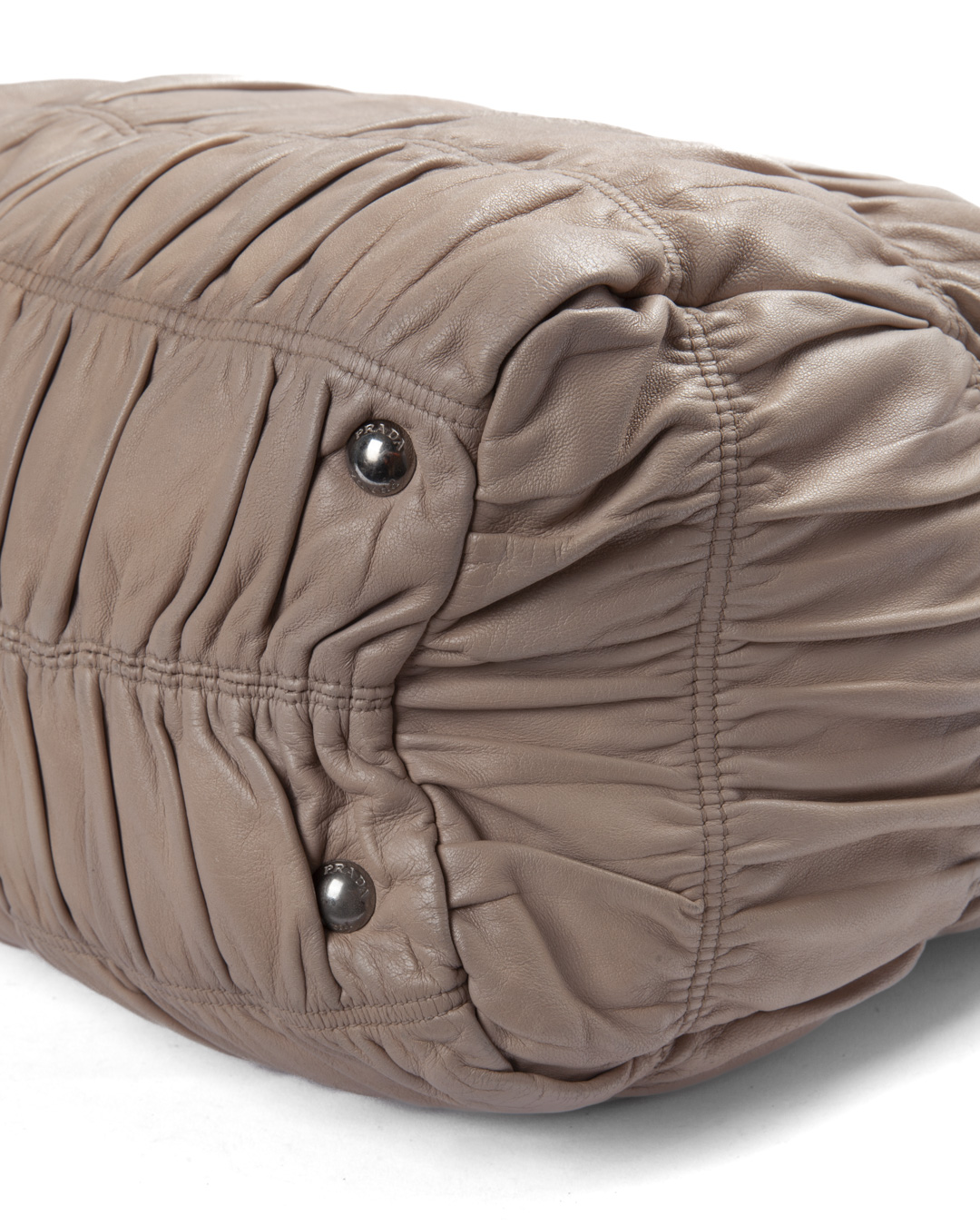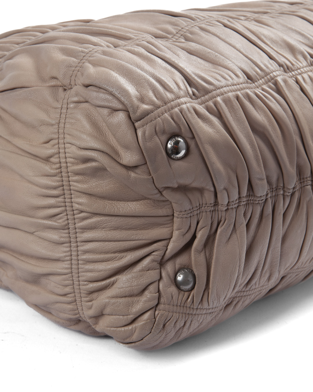 Borsa firmata Prada, modello shopper nella misura medium, realizzata in pelle rosa antico con effetto groffato e hardware argento. Dotata di una chiusura superiore a zip, internamente rivestita in tessuto logato beige con comode tasche, la borsa è abbastanza capiente. Munita di doppio manico e di una tracolla rimovibile e regolabile, per una comoda portata a spalla o a mano. L’articolo si presenta in buone condizioni con segni di usura visibili in foto.