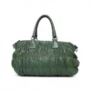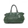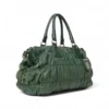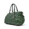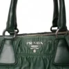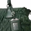 Borsa firmata Prada, modello Shopper nella misura medium, realizzata in pelle groffata verde con hardware argento. Dotata di una chiusura con bottone a clip, internamente rivestita in pelle liscia beige con comode tasche, a borsa è abbastanza capiente. Munita di doppio manico e di una tracolla rimovibile e regolabile, per una comoda portata a mano o a spalla. Presenta due comode tasche superiori, entrambe con chiusura a zip. Completa di Porta-addresse rimovibile, l’articolo si presenta in buone condizioni, con segni di usura interni visibili nelle foto.