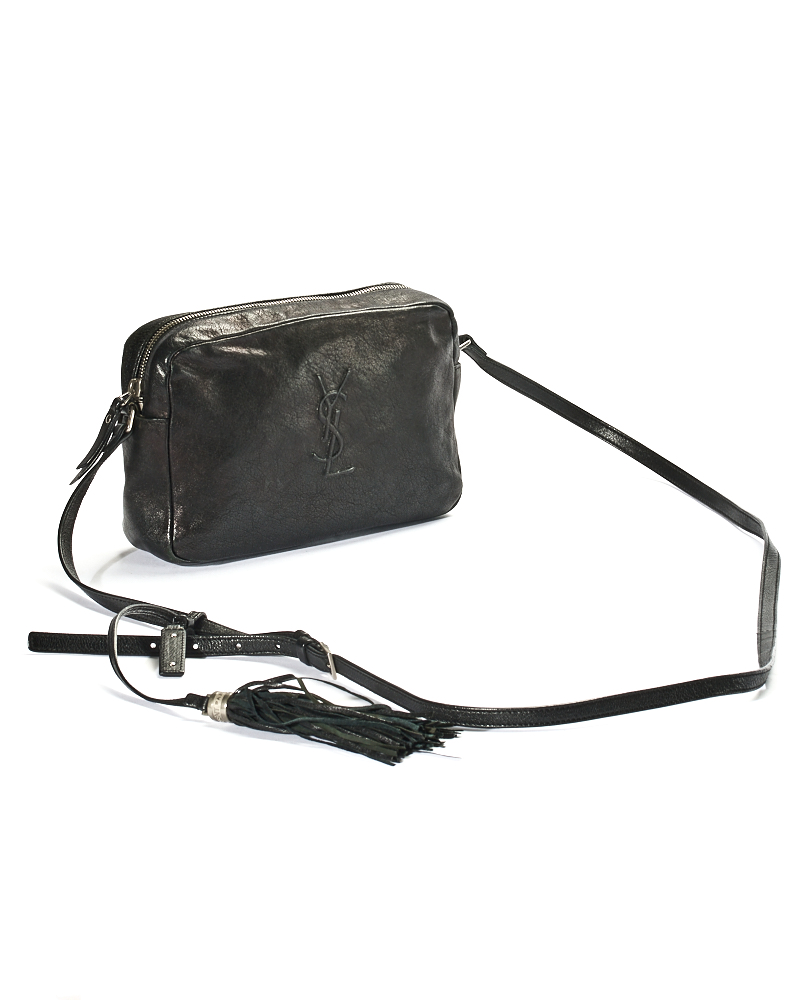 Borsa firmata Saint Laurent, modello Camera Bag Lou, realizzata in pelle liscia nera arricchita dal classico logo del brand in rilievo sulla parte frontale. Dotata di una chiusura superiore a zip, internamente rivestita in tessuto nero con comoda tasca, la borsa è abbastanza capiente. Munita di una tracolla regolabile, per una comoda portata a spalla o a tracolla. Arrricchita da una nappina rimovibile. L’articolo si presenta in buone condizioni, con segni di usura visibili in foto.