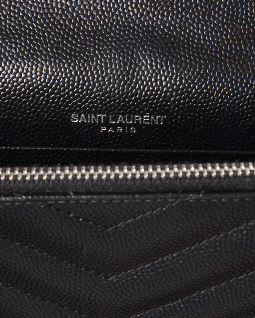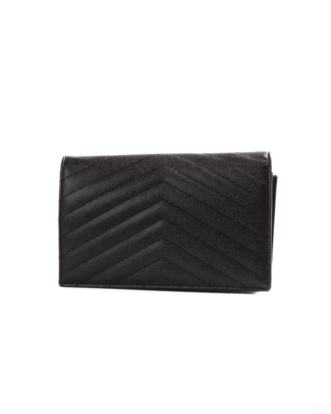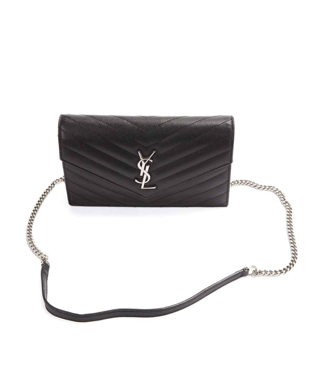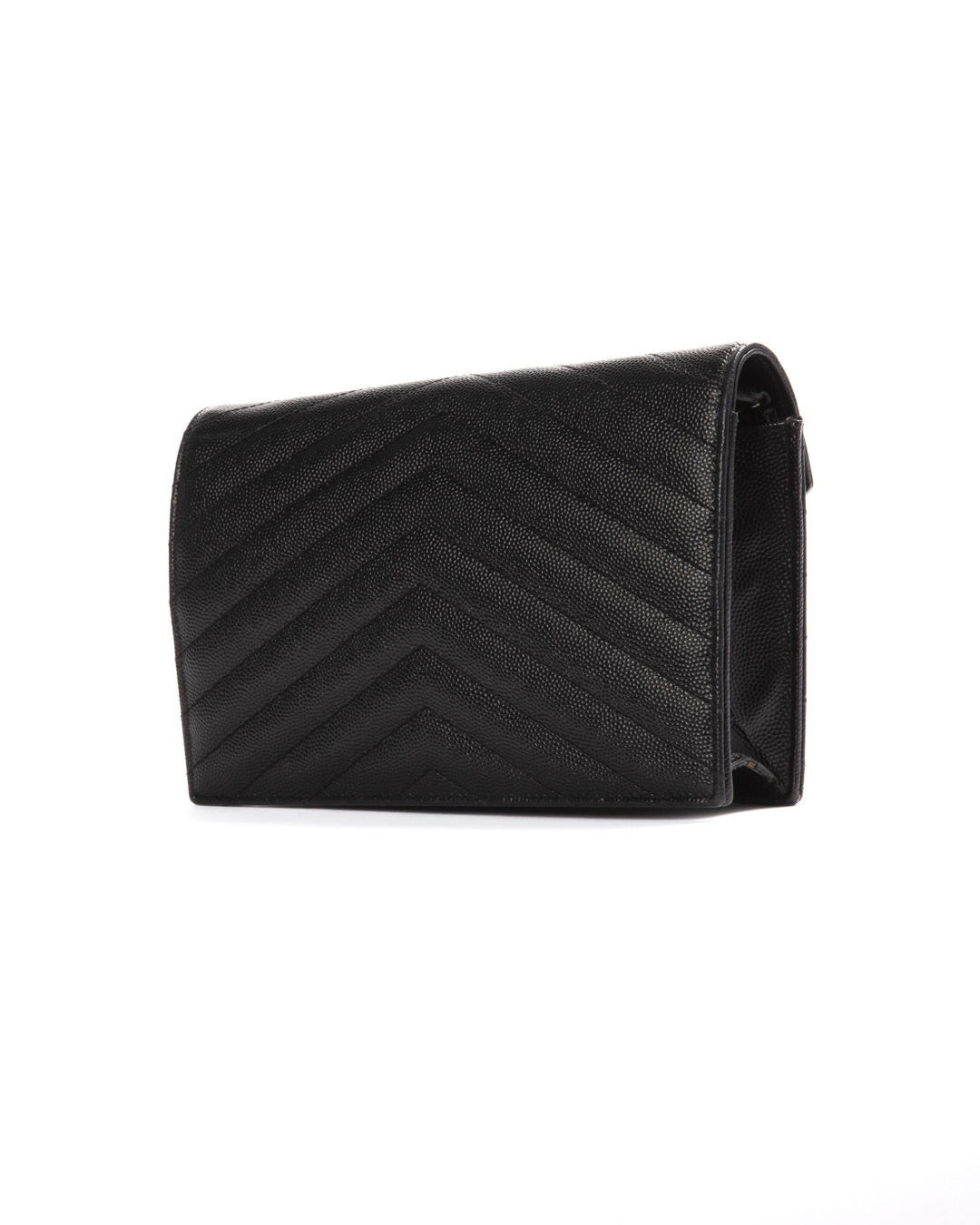 Saint Laurent Cassandre Chain Wallet Granulata Nera