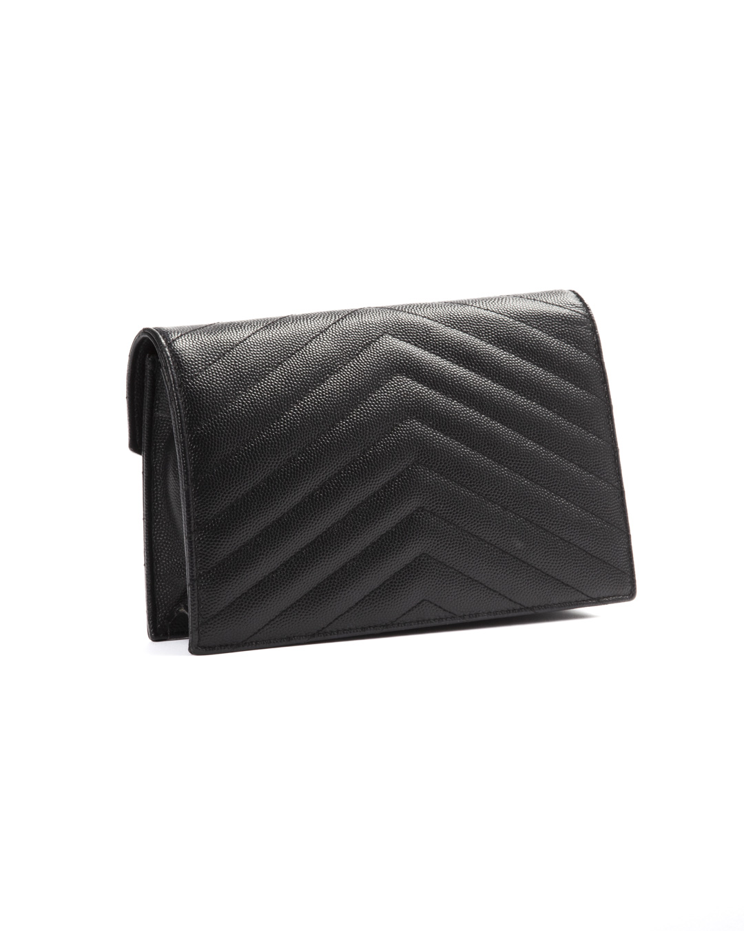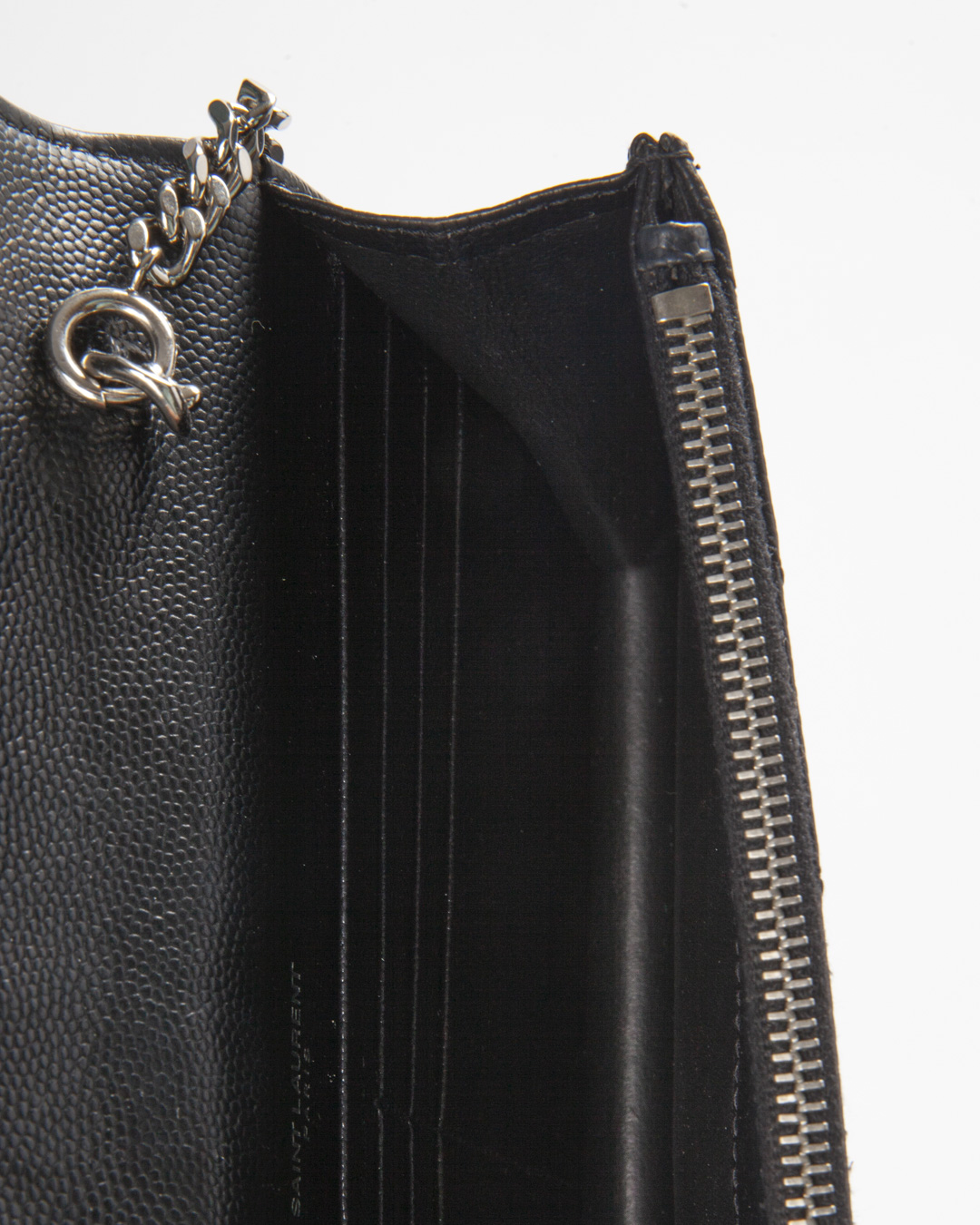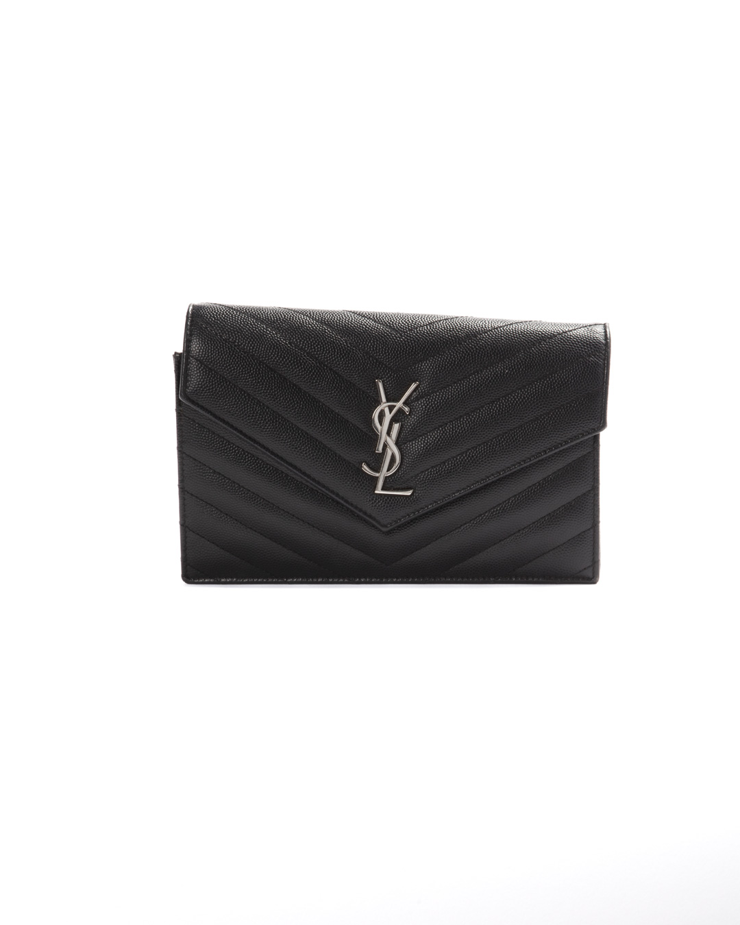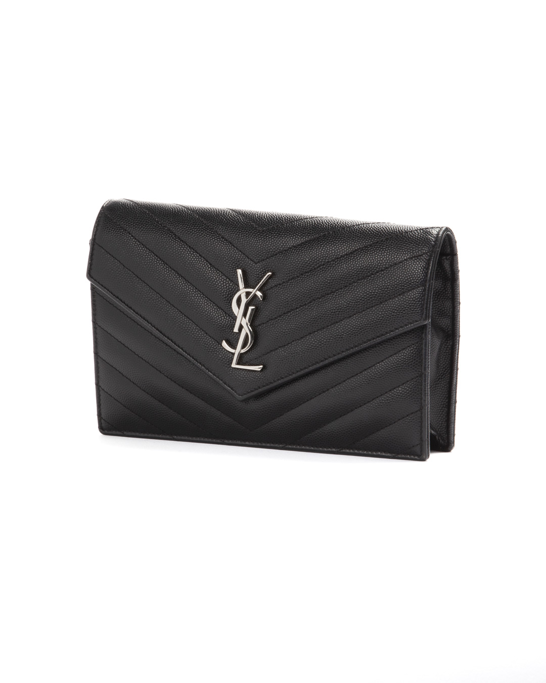 Saint Laurent Cassandre Chain Wallet Granulata Nera