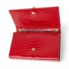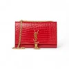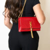 Borsa firmata Saint Laurent, modello Kate nella misura medium, realizzata in pelle cocco rossa con hardware dorato. Dotata di una patta con classico logo del brand “YSL” e chiusura calamitata, internamente rivestita in tessuto nero con piccola tasca, la borsa è abbastanza capiente. Munita di una tracolla regolabile in catena, per una comoda portata a spalla o a tracolla. Arricchita da una nappina sulla parte frontale. L’articolo si presenta in ottime condizioni.