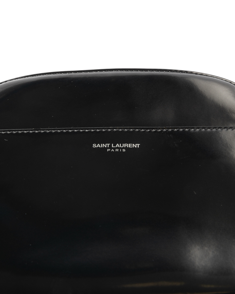 Borsa firmata Saint Laurent, modello Paris nella misura Mini, realizzata in pelle box lucida nera con hardware argento. Dotata di una chiusura superiore a zip, internamente rivestita in pelle tono su tono con comoda tasca, la borsa è capiente per l’essenziale. Munita di una tracolla regolabile e rimovibile, per una comoda portata a spalla o a tracolla. Arricchita da una comoda tasca aperta sulla parte frontale. L’articolo si presenta in ottime condizioni.