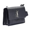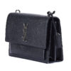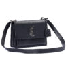 Borsa firmata Saint Laurent, modello Sunset nella misura medium, realizzata in pelle martellata nera con hardware argento. Dotata di una patta con classico logo del brand “YSL” in metallo e chiusura calamitata, internamente rivestita in tessuto scamosciato tono su tono con comodi scompartimenti, la borsa è abbastanza capiente. Munita di una tracolla rimovibile in pelle, per una comoda portata a spalla o a tracolla. Completa di portachiavi rimovibile. L’articolo si presenta in buone condizioni, con segni di usura visibili in foto.