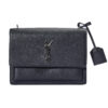 Borsa firmata Saint Laurent, modello Sunset nella misura medium, realizzata in pelle martellata nera con hardware argento. Dotata di una patta con classico logo del brand “YSL” in metallo e chiusura calamitata, internamente rivestita in tessuto scamosciato tono su tono con comodi scompartimenti, la borsa è abbastanza capiente. Munita di una tracolla rimovibile in pelle, per una comoda portata a spalla o a tracolla. Completa di portachiavi rimovibile. L’articolo si presenta in buone condizioni, con segni di usura visibili in foto.