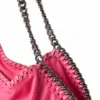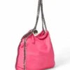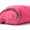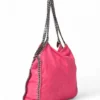 Borsa firmata Stella McCartney, modello falabella 2 chain nella misura medium, realizzata in tessuto scamosciato fucsia con hardware argento. Dotata di una chiusura a bottone calamitato, internamente rivestita in tessuto logato rosa con comoda tasca, la borsa è abbastanza capiente. Munita di doppio manico in catena, per una comoda portata a mano o a spalla. L’articolo si presenta in buone condizioni.