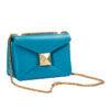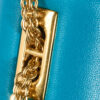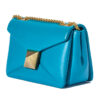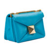 Borsa firmata Valentino, modello One Stud nella misura small, realizzata in pelle turchese con hardware dorato. Dotata di una patta frontale con chiusura calamitata, internamente rivestita in pelle tono su tono con comodi scompartimenti e tasche, la borsa è abbastanza capiente. Munita di una tracolla rimovibile in catena, per una comoda portata a spalla o a tracolla. L’articolo si presenta in buone condizioni.