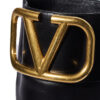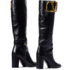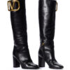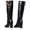 Stivale firmato Valentino, modello Alto, Numero 37. Realizzato in pelle nera arricchito dal classico logo del brand “V” in metallo dorato sul lato. Dotato di una chiusura a zip, presenta un tacco alto 8 centimetri. L’articolo si presenta in buone condizioni, con segni di usura visibili in foto.