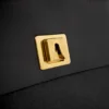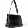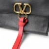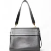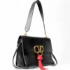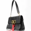 Borsa firmata Valentino, modello VRing, misura medium, realizzata in pelle nella colorazione nera con hardware dorato. Dotata di una patta frontale con chiusura ad incastro, internamente rivestita in pelle tono su tono e presenta comode tasche, la borsa è abbastanza capiente. Munita di un manico superiore in pelle per una comoda portata a spalla. Sulla parte frontale presenta il classico logo ”V” del brand in metallo dorato. L’articolo si presenta in ottime condizioni.